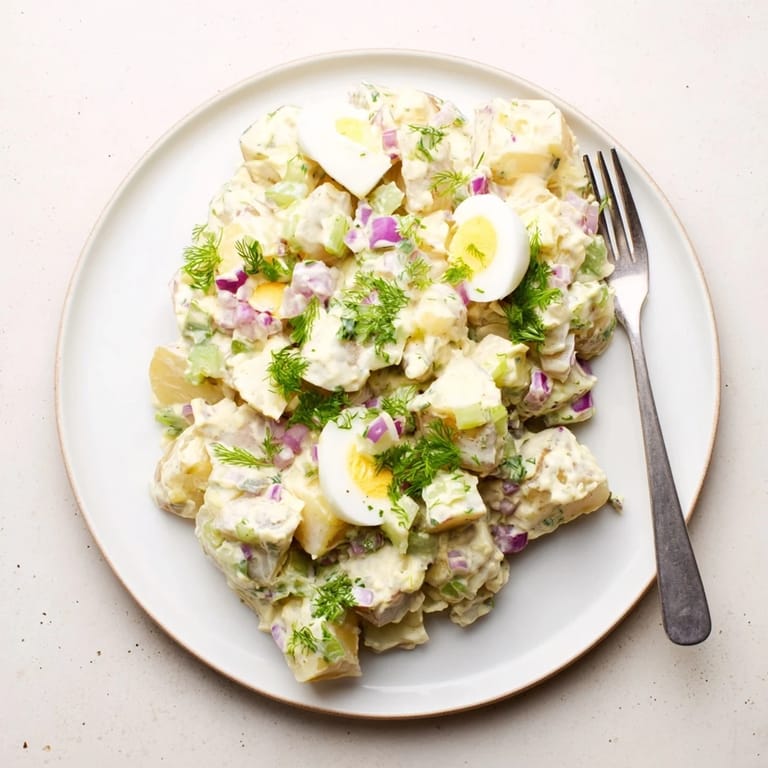 Save There's something about the sound of a fork against chilled potato salad that immediately takes me back to summer block parties where every neighbor brought their version. My version started as a desperate attempt to recreate what I thought was my grandmother's secret recipe, only to realize she'd been using a store-bought base all along. That happy accident led me to develop this from-scratch approach that balances creaminess with just enough tang to make you reach for seconds.