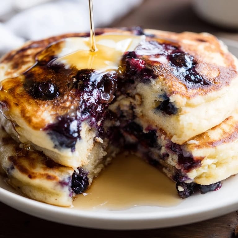 Save The kitchen was still dark when my daughter padded in, asking for pancakes before anyone else was awake. Something about that quiet morning request made me want to make these special. I found a container of blueberries in the fridge and decided to surprise her with little purple pockets bursting through the golden batter.