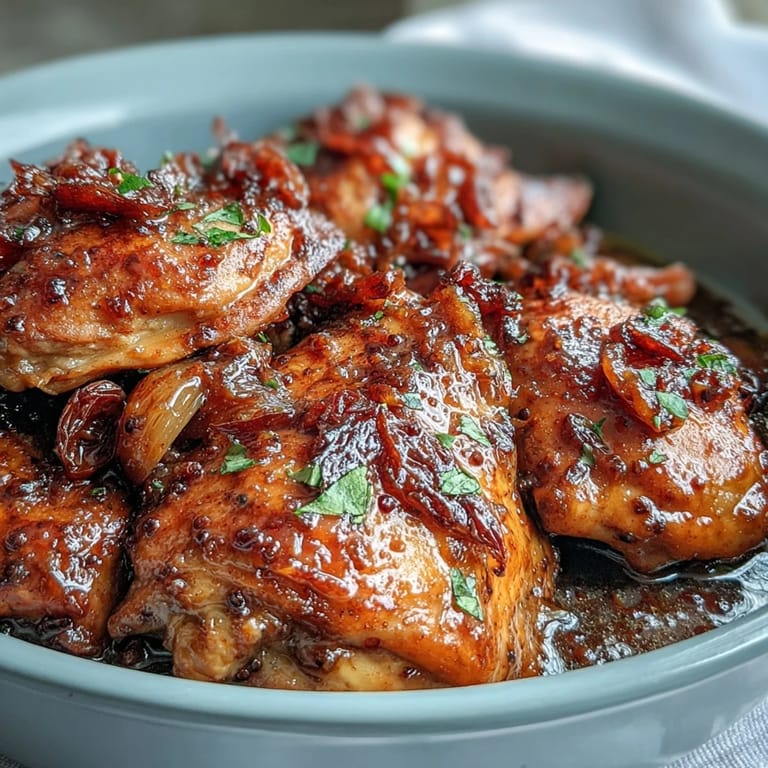 This chicken is at its best spooned over a pile of fluffy white rice or creamy mashed potatoes that soak up all that glossy sauce. Roasted green beans, steamed broccoli, or a simple side salad with a tart vinaigrette balance the sweetness beautifully. If you're feeling fancy, garnish with a sprinkle of fresh parsley or a few extra mustard seeds for texture.