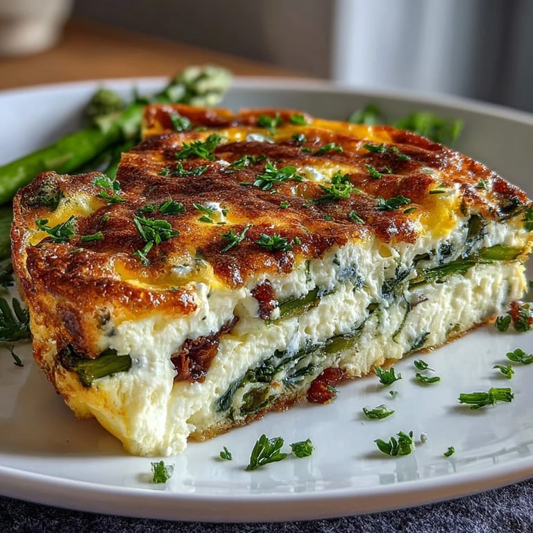 Save Welcome the freshness of spring with this light and fluffy frittata, bursting with tender asparagus and creamy goat cheese. This Italian-inspired dish perfectly balances vibrant vegetables and tangy cheese, making it a delightful centerpiece for any spring brunch. The blend of fresh herbs adds an aromatic lift, ensuring each bite is as refreshing as the season itself.