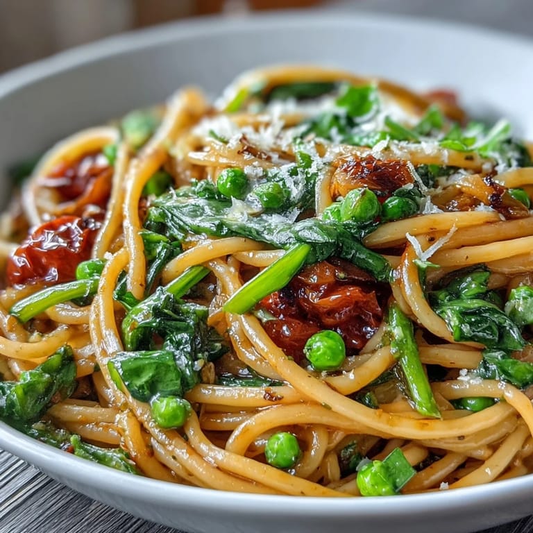 Save There's something magical about the moment when you realize you can make an entire, satisfying dinner in one pot without turning your kitchen into a disaster zone. My cousin texted me a photo of her sad, overcooked pasta one Tuesday evening, and I found myself walking her through this recipe while she stood at her stove with the phone propped against a jar. By the time she hung up, she was genuinely shocked that spring vegetables and pasta could taste this bright and balanced without any fussy techniques or endless cleanup.